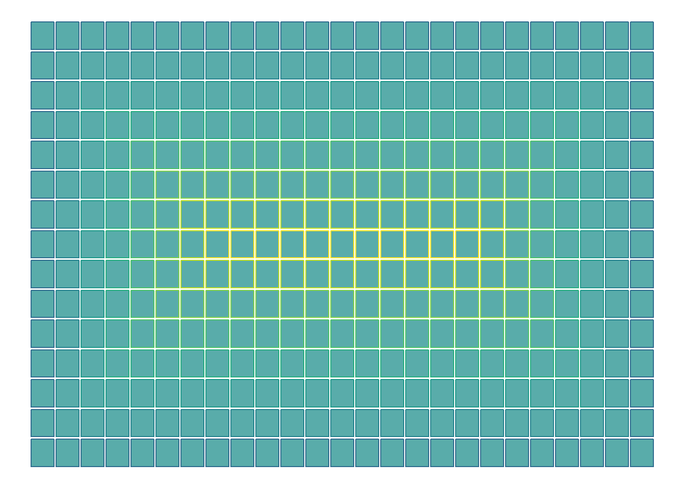 Rotation of rectangles in a grid using a general pattern for simulated hysteresis. This almost entirely derivative effort is a tweak code provided by @quantixed in their post Turn A Square: generative aRt. The incremental change here is to organize the calculated hysteresis as rectangles of line segments so they can be filled with colors using the ggplot2 library. Chose the viridis color palette here, it seemed to work nicely.